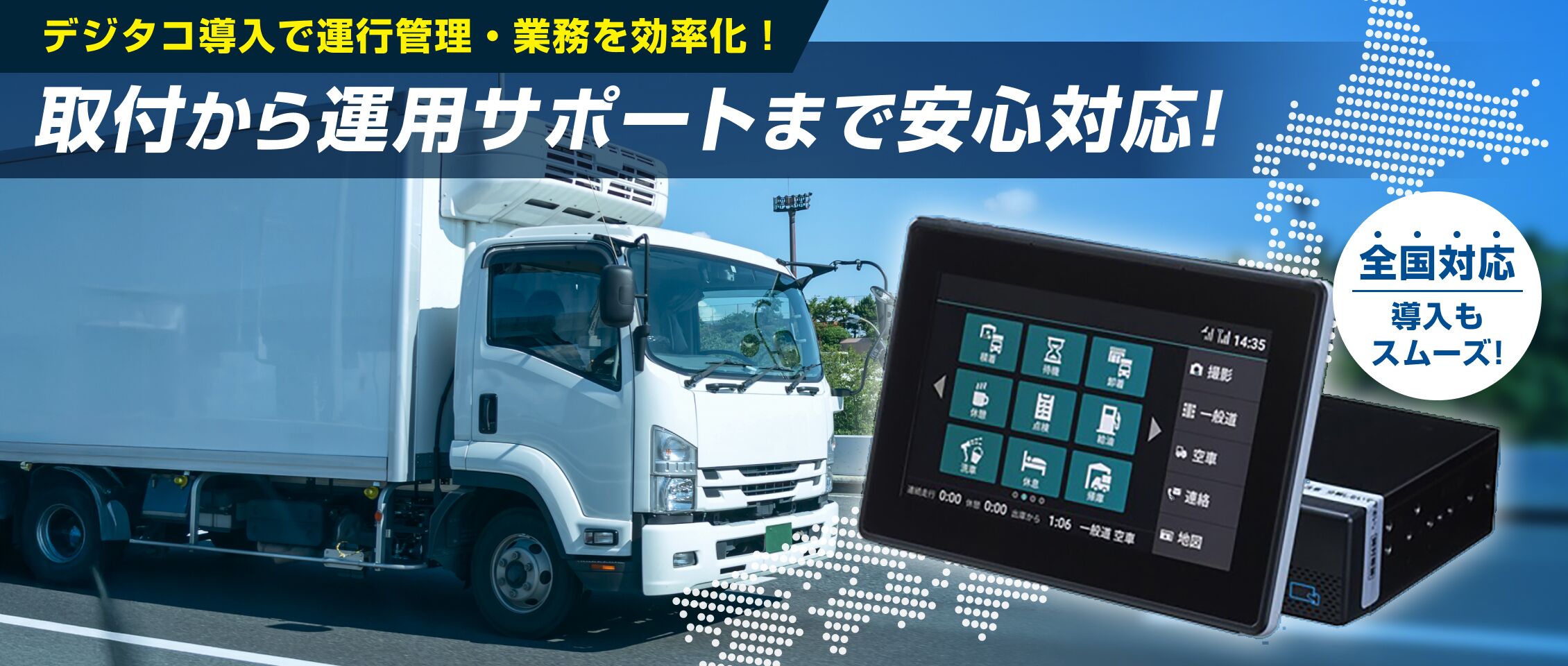 デジタコナビは、業務用デジタコ機器の販売から、専門スタッフによる取付工事、さらに導入後のアフターサポートまで、ワンストップでご提供いたします。